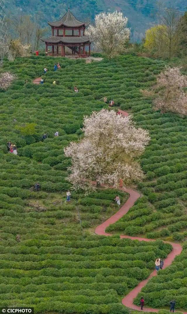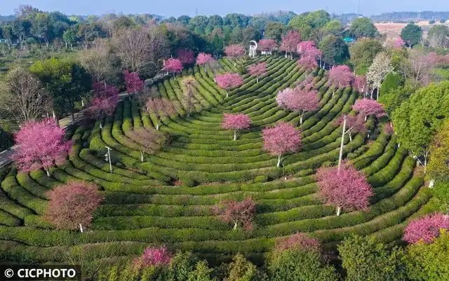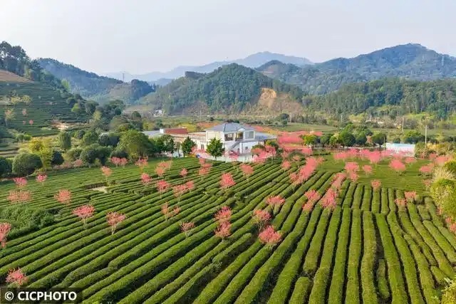 早春时节中国股票配资门户网站,多地茶园绿意盎然,盛开的春花点缀其间,景美如画。
