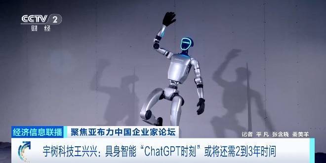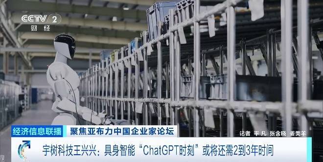 宇树科技创始人 首席执行官 王兴兴:未来,如果一个机器人的AI模型可以在80%左右的陌生场景,通过语言和文字指令实现80%的任务,我觉得就差不多达到了具身智能“ChatGPT时刻”,至少要2到3年时间。